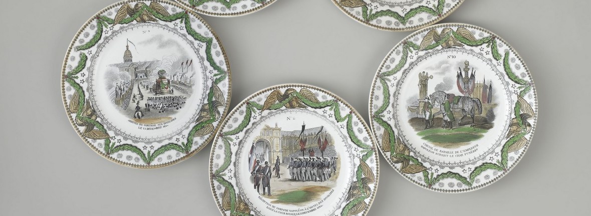 Visuel : Assiettes de la série « Retour des cendres », porcelaine opaque de Creil, vers 1840